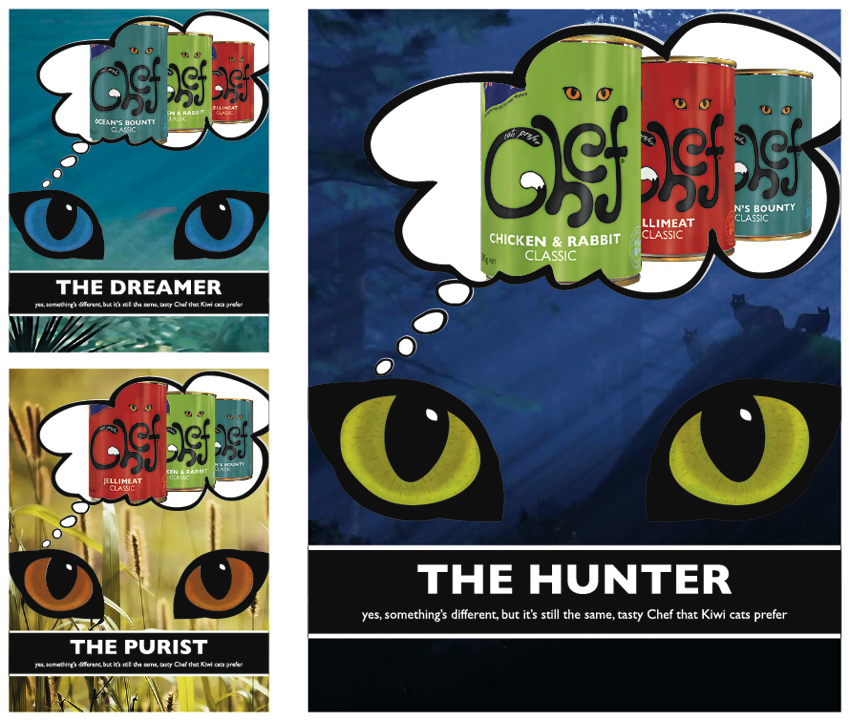 Student project: Chef logo, labels and magazine advertising campaign. Background images used in the ads are courtesy of the Internet.