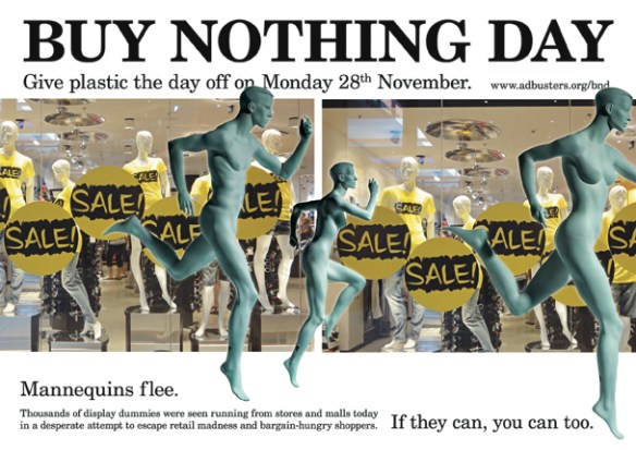 A newspaper ad promoting Adbusters’ Buy Nothing Day. Originally a 72-hour group project, this ad is my personal solution. It was created using images sourced from the Internet.