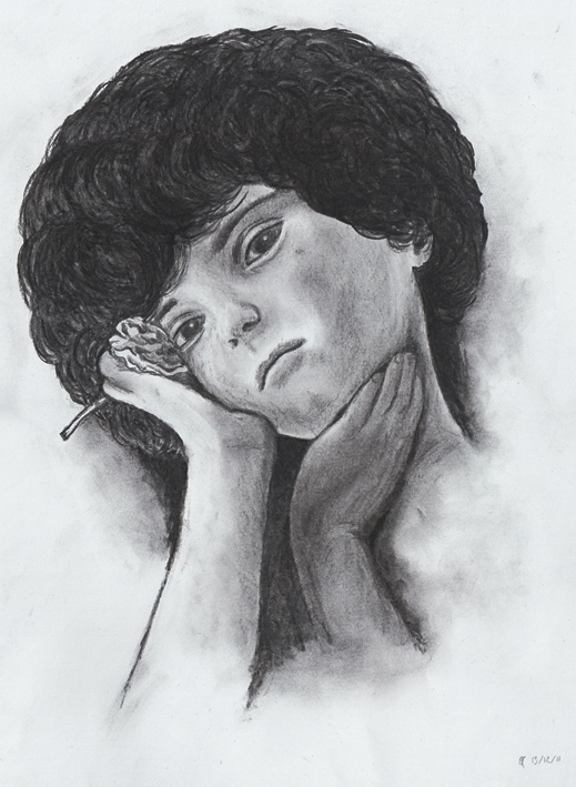 Self-portrait in charcoal