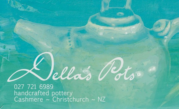 A business card for a local potter. The main image is based on a photograph of one of Della’s teapots which I’ve reinterpreted and layered over a hand-painted background. The Della’s Pots logo has been created using the client’s own handwriting.