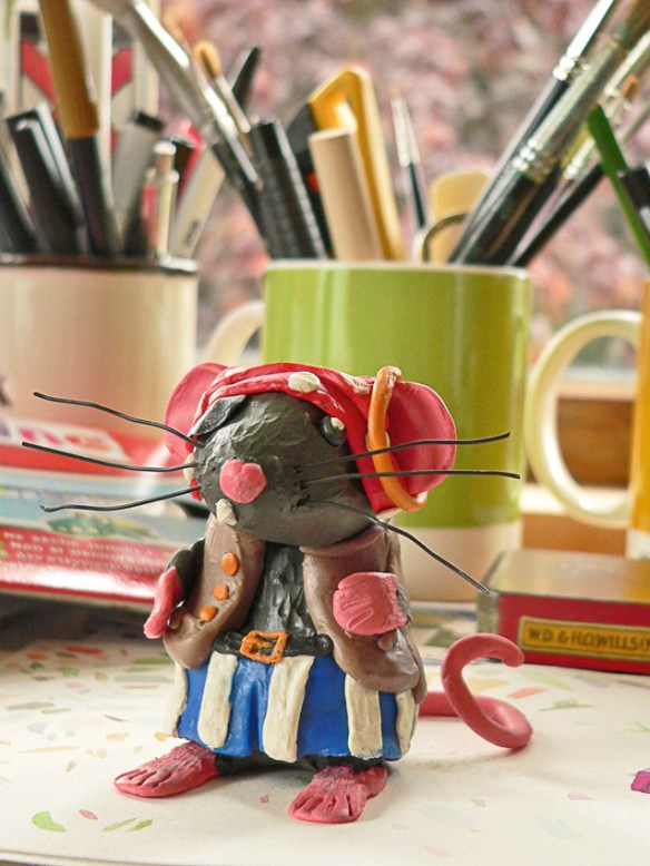 Pirate Mouse model — plasticine and wire, 75 mm tall, 2012.