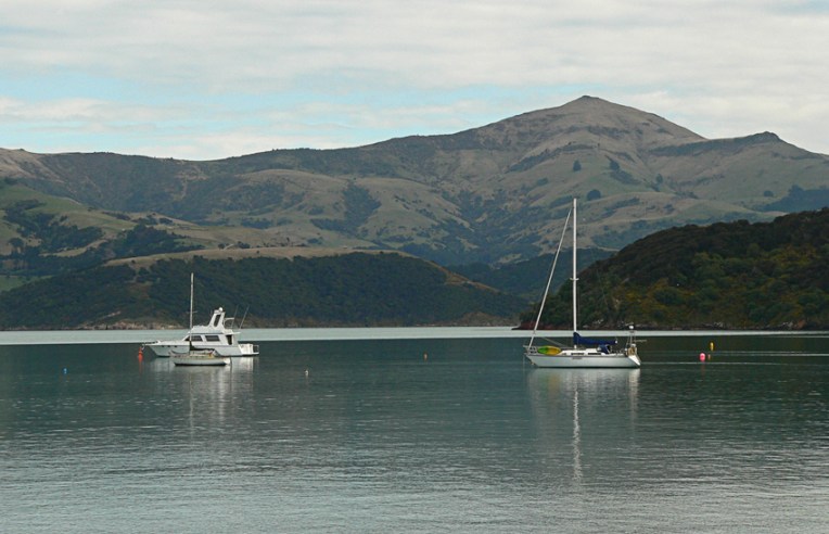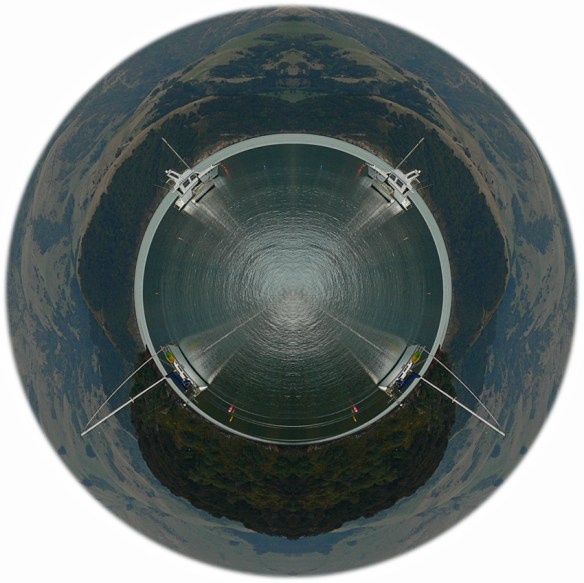 A photo of Akaroa Harbour distorted using Photoshop’s polar coordinates filter. The original photo is shown below. It’s the same technique I used on Spheres one and two.