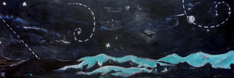 The Sound of Things — acrylic on canvas, 205 x 610 mm, 2019. SOLD