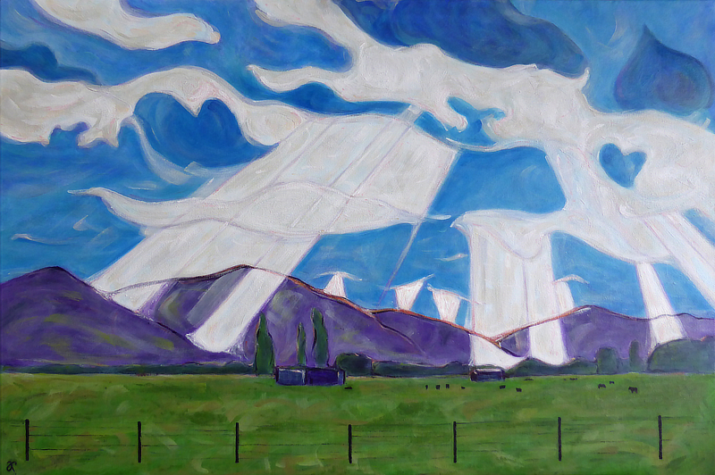 LANDSCAPE IN THE LATE AFTERNOON (WITH COWS) painting ~ acrylic on canvas, 510 x 760 mm, 2015 ~ original blog post: BOTH SIDES OF THE LINE © Anna Cull. All rights reserved. Related