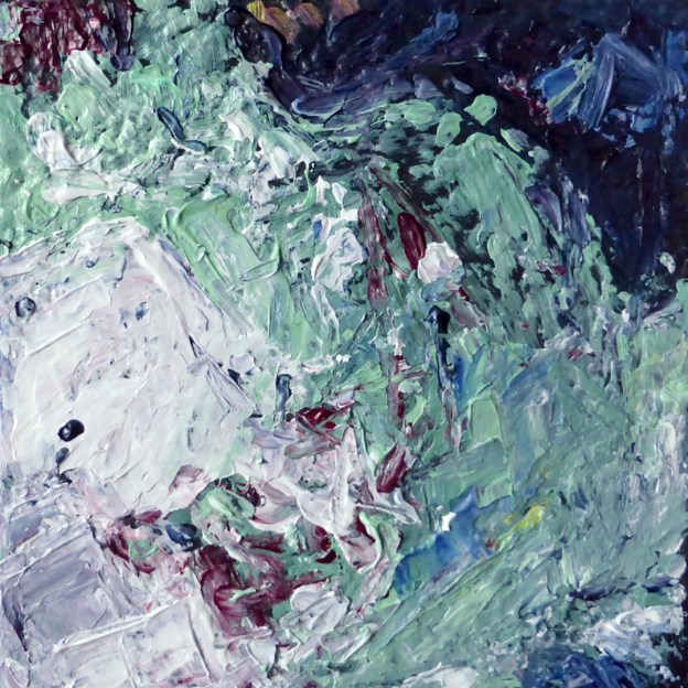 I’ve been experimenting with my six-word stories again. Several months ago I created a couple of small mixed media versions by transferring printed words onto painted canvases. This time I’ve painted the words so that they are an integral part of an abstract landscape. I’m so pleased with the result that I’m already planning the next one…