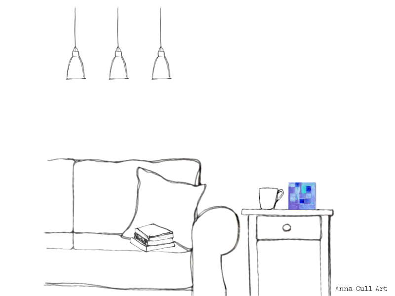 Everything Centred Around a Single Day — acrylic on canvas (Drawing Room mock-up), 405 x 405 mm, 2018. Sold.