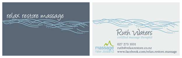 Ruth wanted her Relax Restore Massage logo (above) to be simple and modern and to represent the soothing and healing aspects of her massage therapy business. The river lines were hand-drawn, scanned and converted into a vector graphic. They also became the background pattern for Ruth’s gift vouchers and Facebook cover.