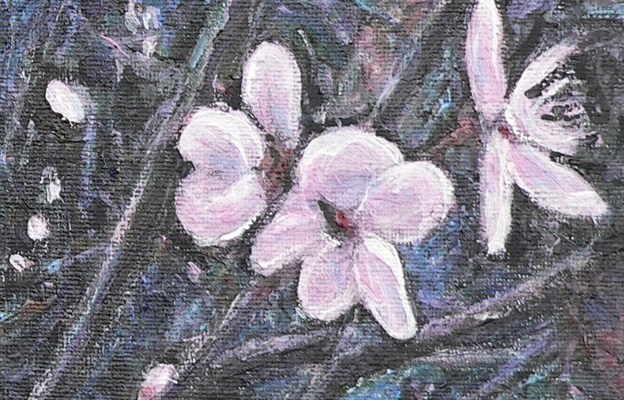 I painted it three times ― twice with brushes (above) and a third time with a palette knife (using the leftover paint for the background) and acrylic paint markers (below).