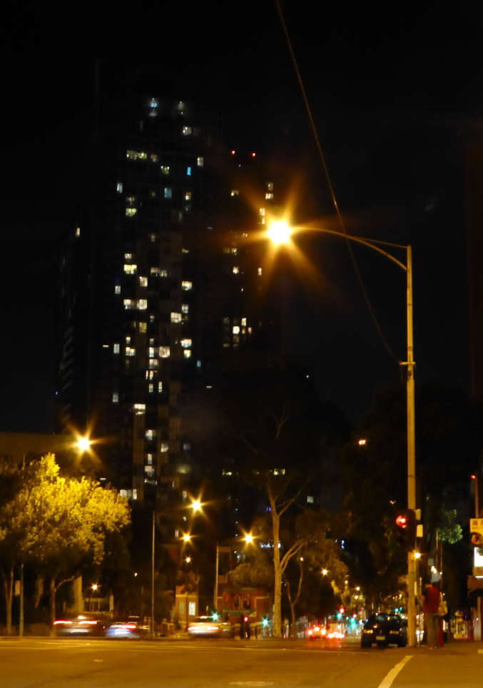‘City Lights’ is my second black canvas diptych inspired by Melbourne at night. The photograph (below) that inspired the painting was taken somewhere near Lygon Street. The photo of the painting (above) doesn’t really do it justice. As much as I love painting these black canvases, I’m finding them almost impossible to photograph properly.